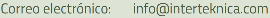 La página web de nuestra empresa no solicita datos personales de los usuarios que la visiten. Solo se reciben los datos personales que el mismo usuario suministre por medio de correo electrónico o el formulario de contacto con el fin de contactarnos y solicitar información de nuestros productos y servicios. INTERTEKNICA no cederá estos datos a terceros, salvo que sea necesario para la prestación de información de productos y servicios que sean necesarios, como por ejemplo a nuestros proveedores de productos para poder completar la solicitud del usuario o cliente.