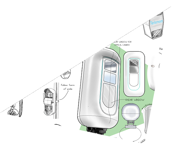 El equipo de diseño, investigó la gama de dispositivos utilizados actualmente en mobiliario urbano para evaluar su estética, métodos de montaje y estabilidad. Se determinó que estos dispositivos a menudo se perciben como intrusivos, ya que se destacan con colores brillantes y tienen una estética intimidante con bordes doblados nítidos. La solución tenía que ser adaptable para su montaje en cualquier diseño de alumbrado público internacional y ajustarse durante la instalación a la inclinación de la carretera para que las cámaras tuvieran una visión apropiada.